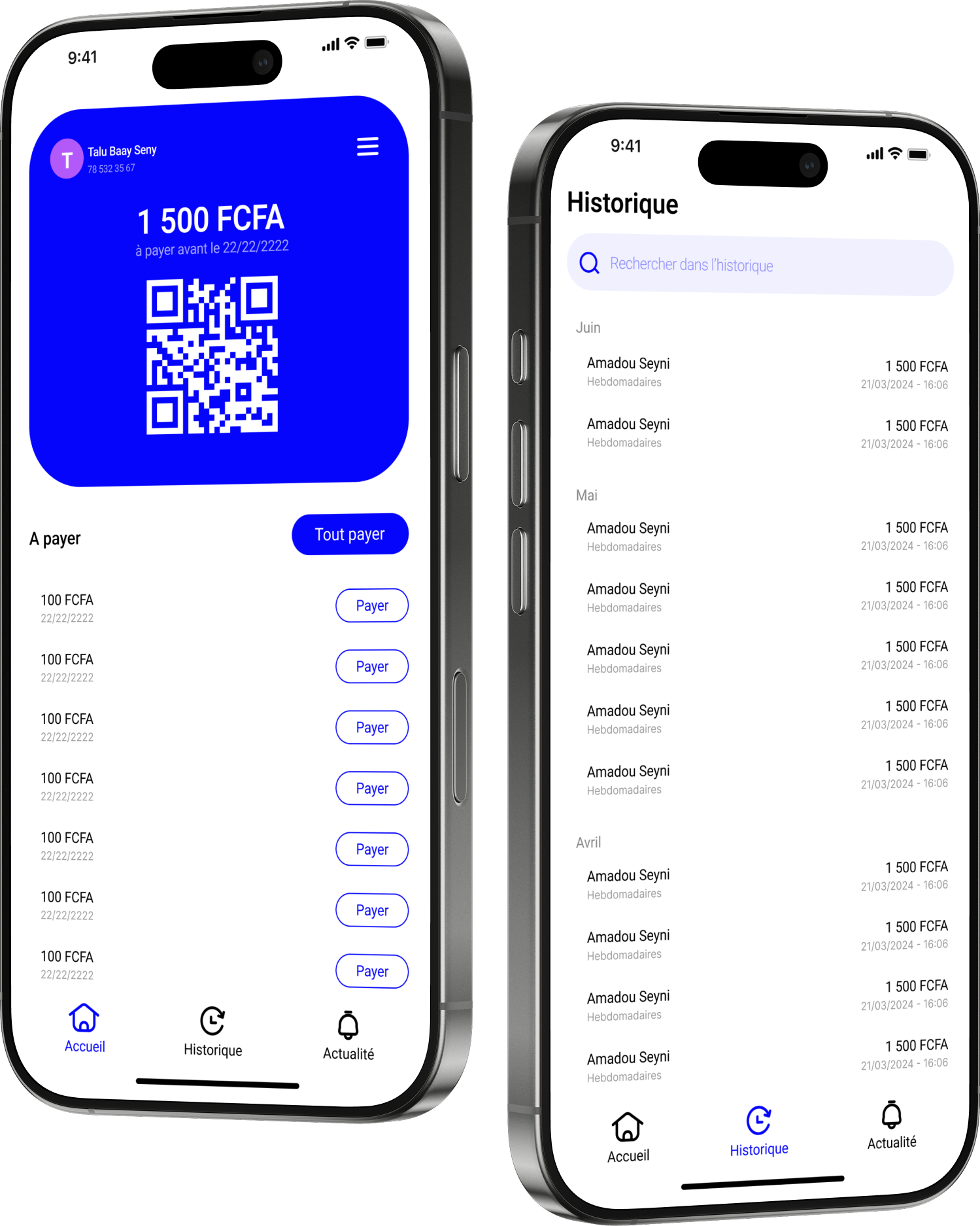 Paiement simplifié via mobile money, suivi de ses taxes, historique des paiements et application mobile dédiée.